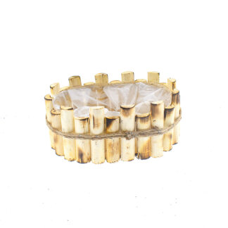 42335Houten planter naturel gebrand met touw rondom ovaal 26,5×20 H10/12cm
