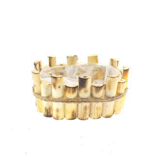 42333Houten planter naturel gebrand met touw rondom rond D22 H10/12cm