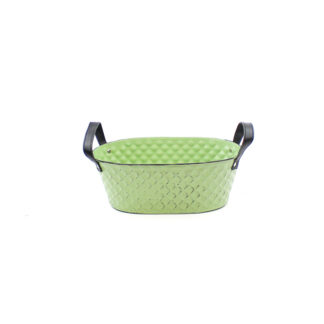 71933Zink groen met bruinwash old look ovaal 25,5×15,5 H10 B21x12cm