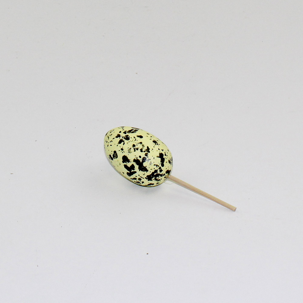 Ei 4×6 licht geel met bruine stippen op steker 8cm