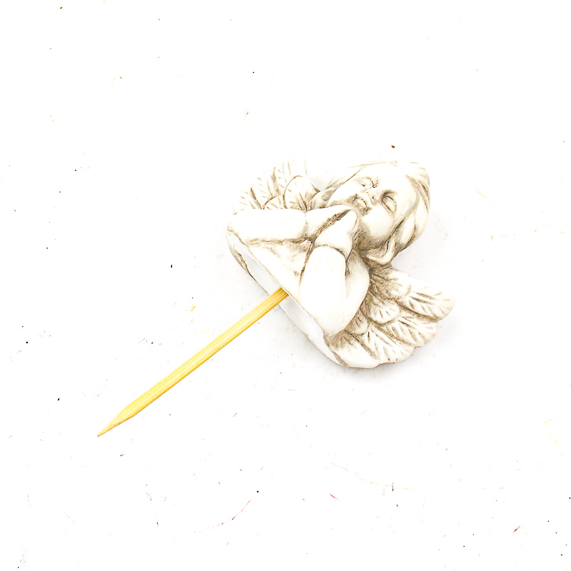 Engel keramiek (M) breedte: 11,2cm H9cm grijs op steker 8cm aantal