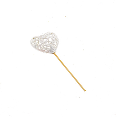 Hart 6x6cm barok wit op steker 10cm