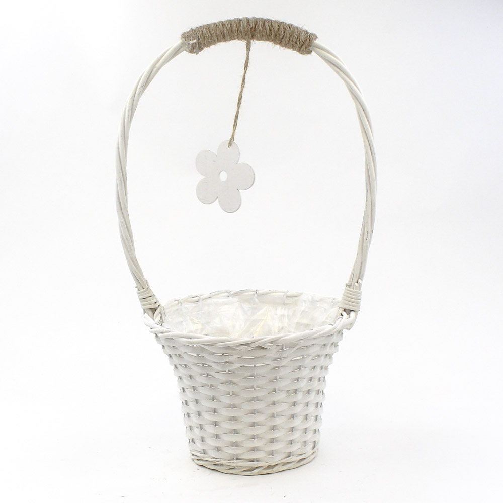 Hengselmand spaanhout wit met touw en bloem D23cm (in dzn.)