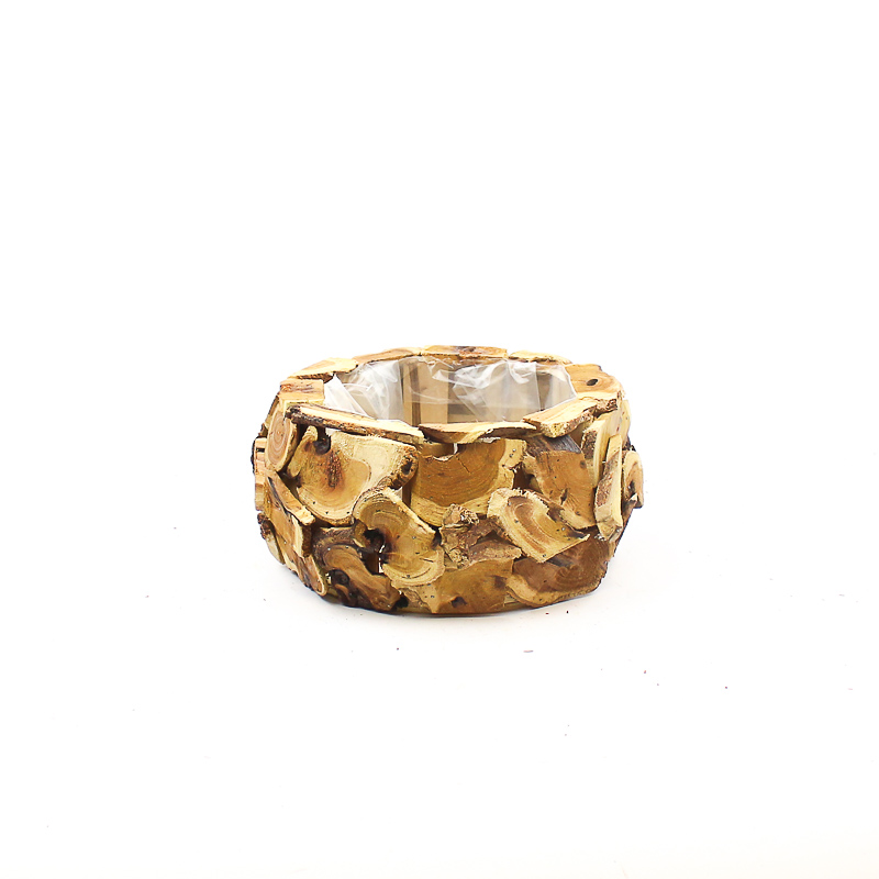 Houten bak stukken drijfhout bruin rond D25 H11cm