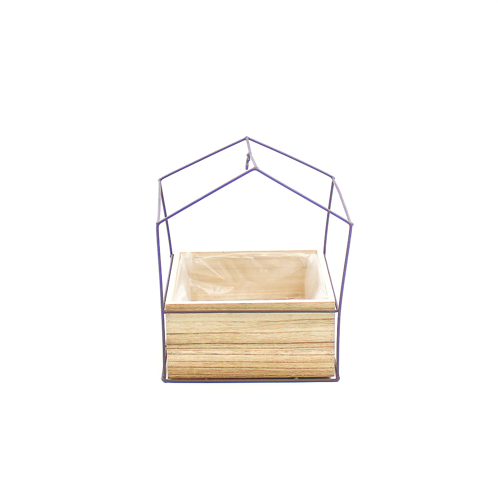 Houten bak vierkant naturel/bruin 18,5x18,5 H9 in metalen huis zwart 20x20 H25cm aantal