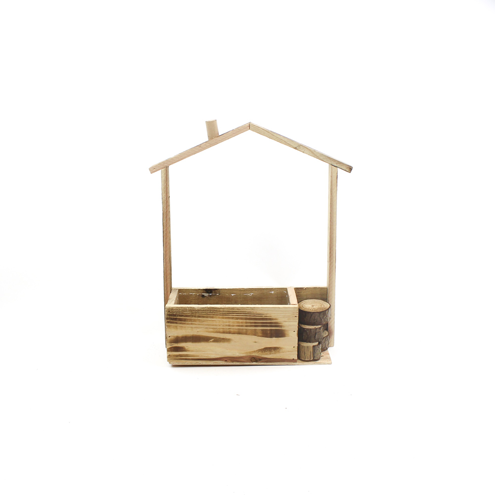 Houten planter in de vorm van een huis 29x10cm H37cm