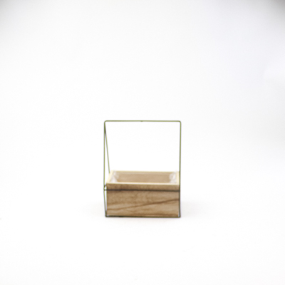 Houten planter naturel rechthoek met metalen hengsel 18×11 H7/23 B18x11cm