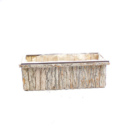 Houten planter verticale stukken schors grijs rechthoek 44×15 H13cm