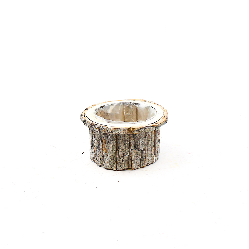 Houten planter verticale stukken schors grijs rond D22 H10cm