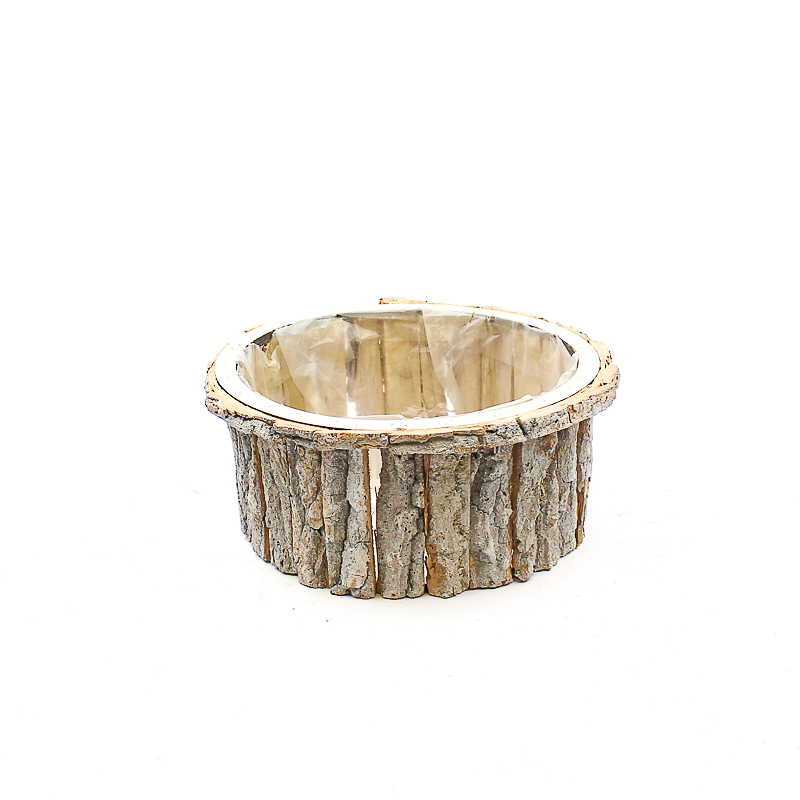 Houten planter verticale stukken schors grijs rond D26 H11cm