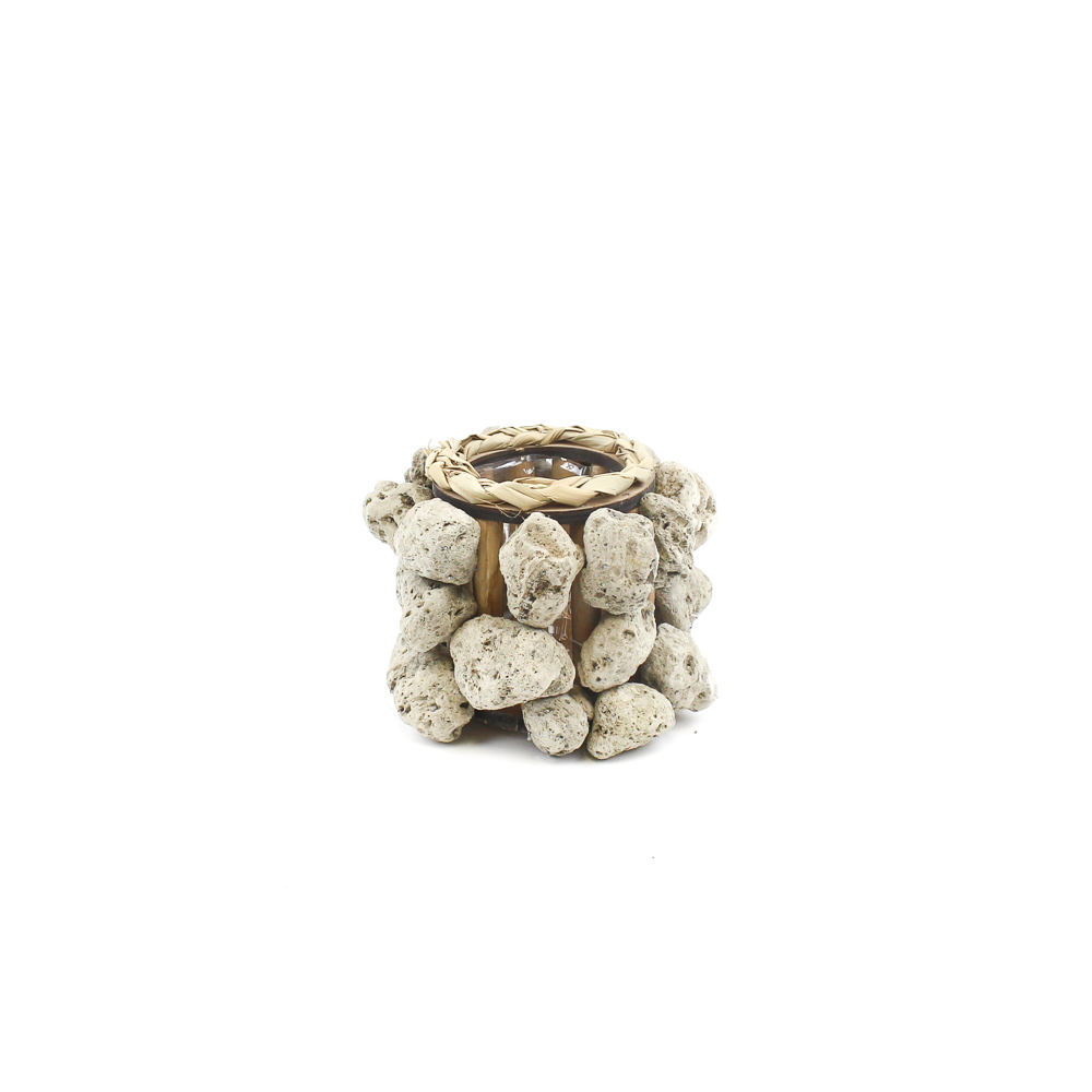Houten pot met lava stenen grijs rondom D11 H12cm