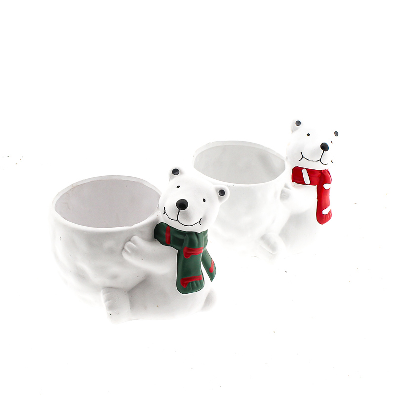 Keramiek beer wit met rode EN groene sjaal (MIX) D10 H10cm (ES9)