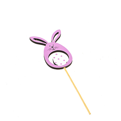 Konijn in eivorm hout lila met ei erin 9,3x6cm op steker 10cm