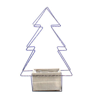 Metalen kerstboom zwart met 15x led 30,5x10,5 H10/50cm met grijze houten bak rechthoek 17x9 H11cm