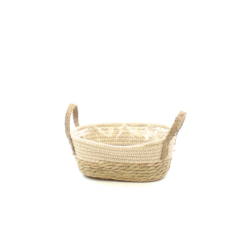 Mand gras naturel met touw wit en bruin met oren rond D14 H12/17cm (48st./ds.)