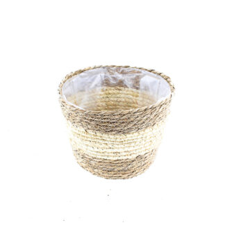 Potmand gras bruin met naturel band in midden rond D25 H18 B17cm