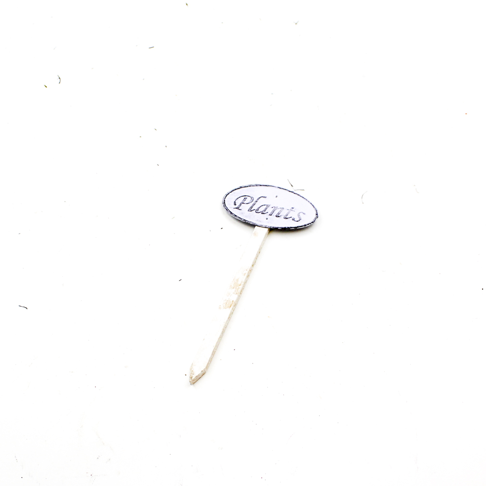 Metalen bordje ovaal wit "Plants" op houten steker aantal