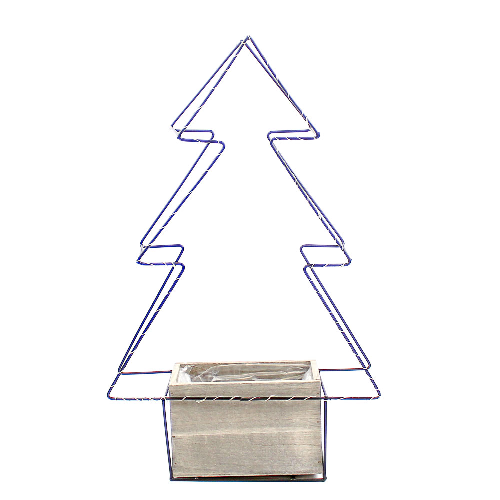 Metalen kerstboom zwart met 15x led 30,5x10,5 H10/50cm met grijze houten bak rechthoek 17x9 H11cm aantal