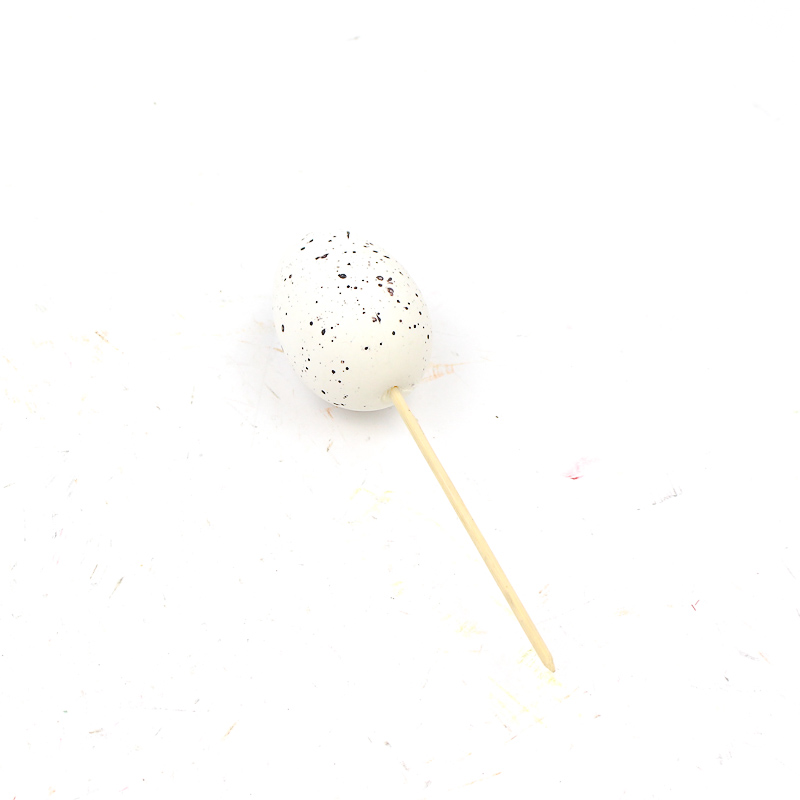 Paasei H5,5cm wit met spikkels op steker 9cm (170.3170) aantal