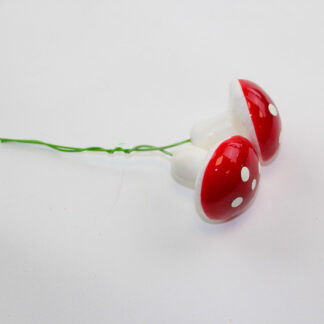 Paddenstoelen 4cm x2 rood met witte stippen op steker 8cm