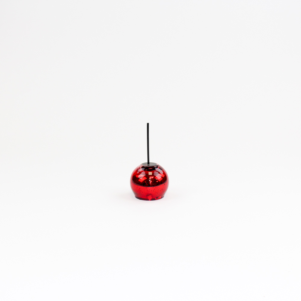 Ronde glasbal antiek rood D6,5 H5,5 op steker 7,5cm aantal