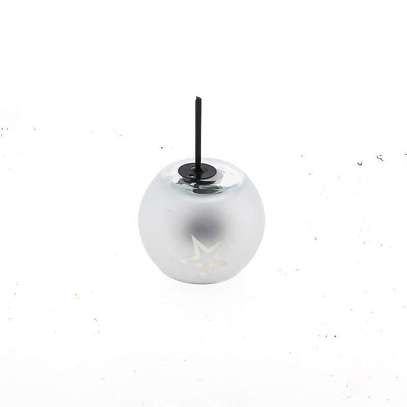 Ronde glasbal zilver antiek met ster print D6 (breedte 8,7cm) H7 op steker 5cm