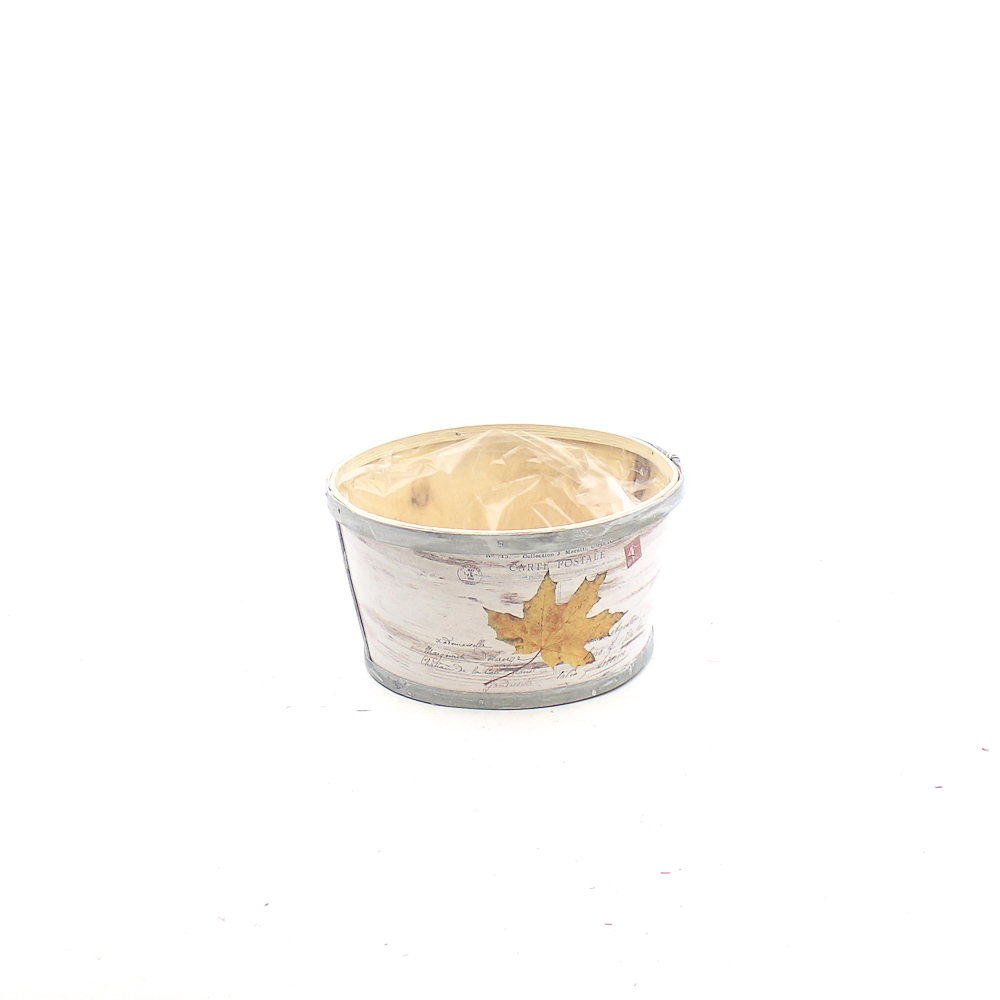 Spaanhout wit met grijze rand met print geel blad rond D23 H12cm