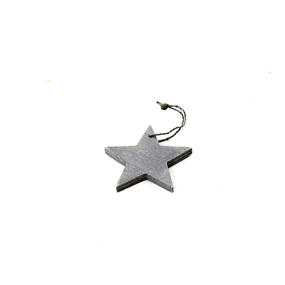 Ster hout 8,5×8,5cm grijs whitewashed op touwhanger (180.0670)
