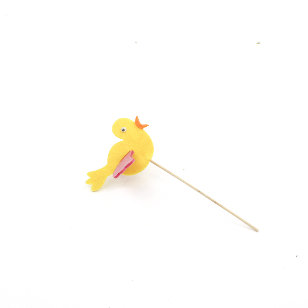 Vilten vogel 9x6cm geel op steker 12cm aantal
