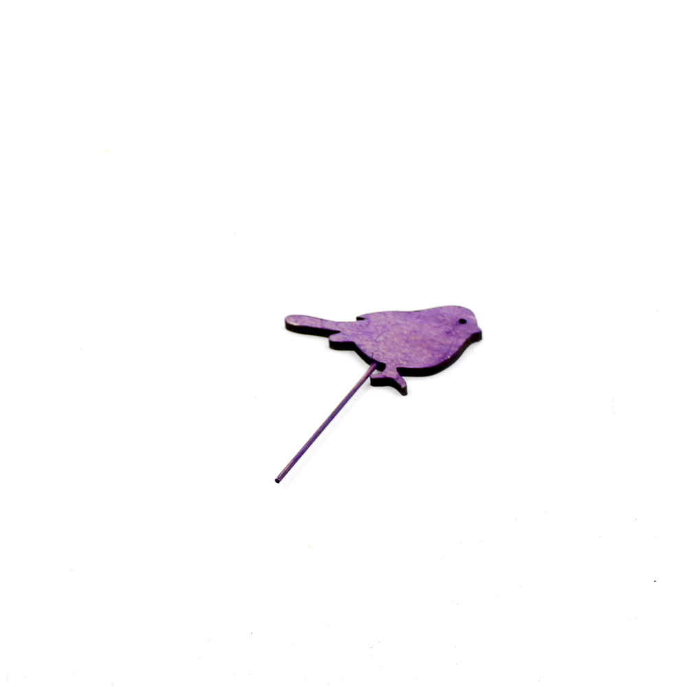 Vogel hout paars op steker 10cm