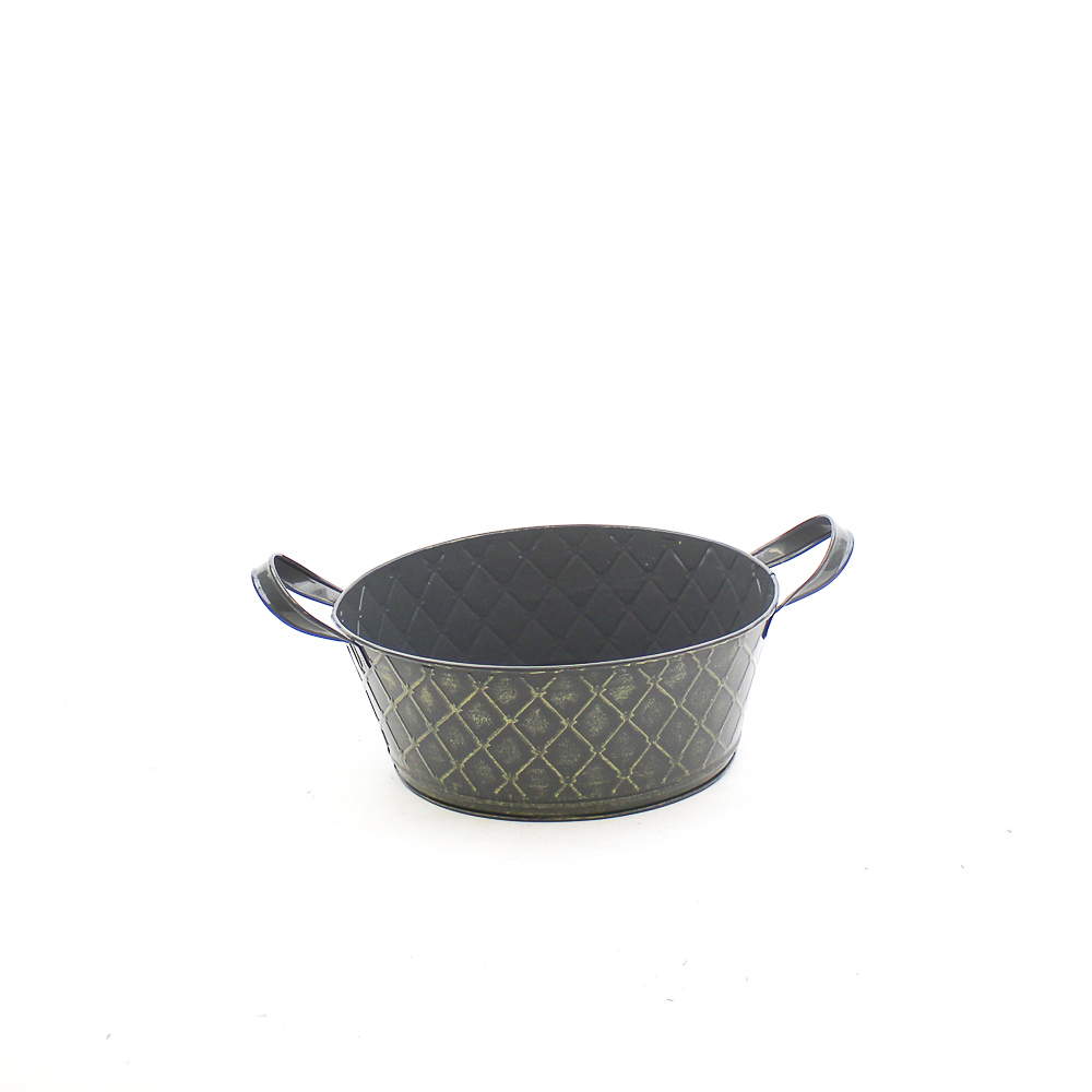 Zink grijs met ruit patroon goud met zinken oren ovaal 25x16 H10 B21x12cm