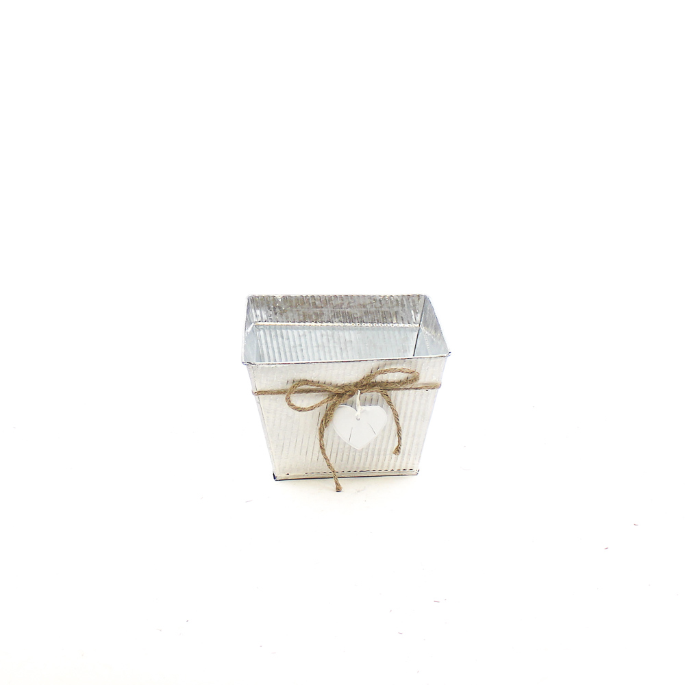 Zink grijs whitewashed met touw strik en witte hart vierkant 18×18 H13 B13x13cm