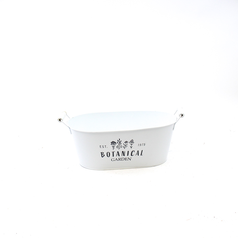 Zink mat wit “Botanical Garden” met houten oren ovaal 30,5×19 H12 B25x14cm