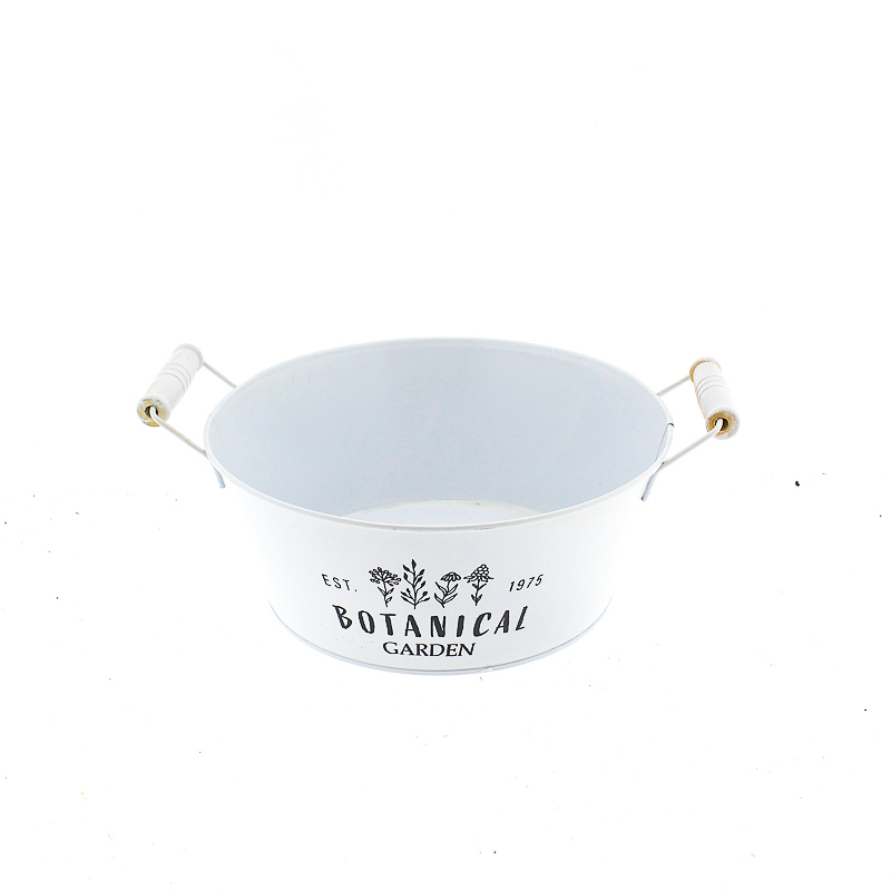 Zink mat wit “Botanical Garden” met houten oren rond D25 H10 B20cm