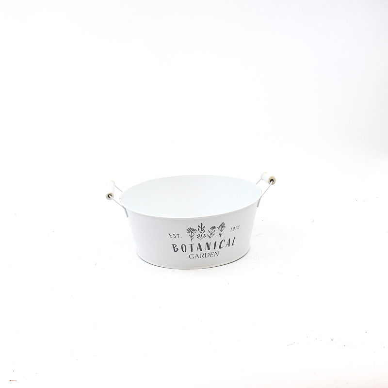 Zink mat wit "Botanical Garden" met houten oren ovaal 26,5x16,5 H10 B21,5x11,5cm