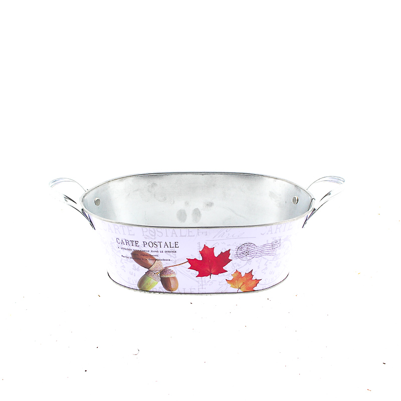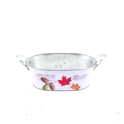 Zink naturel, wit met print herfstbladeren met oren ovaal 25x16 H9/12,5cm (100.3951) aantal