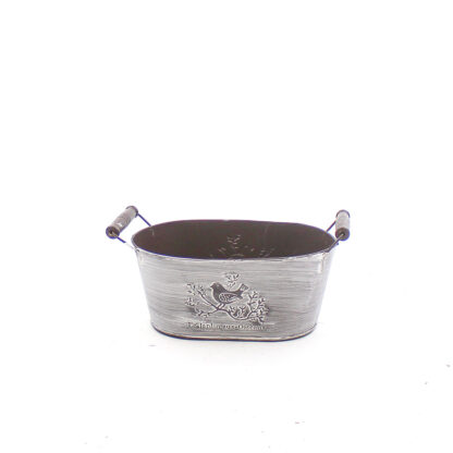 Zink ovaal whitewash met houten oren en vogel print 25x14cm