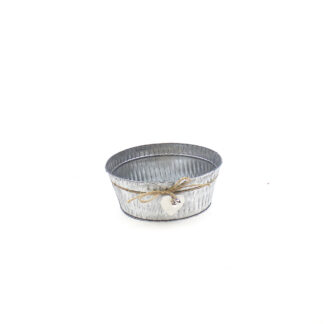 Zink verticale strepen whitewash met touw en houten hart wit en zilveren hartjes rond D22cm