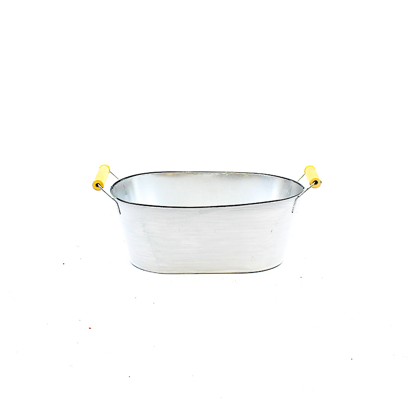 Zink whitewash met houten oren ovaal 25,5×15,5 H10cm