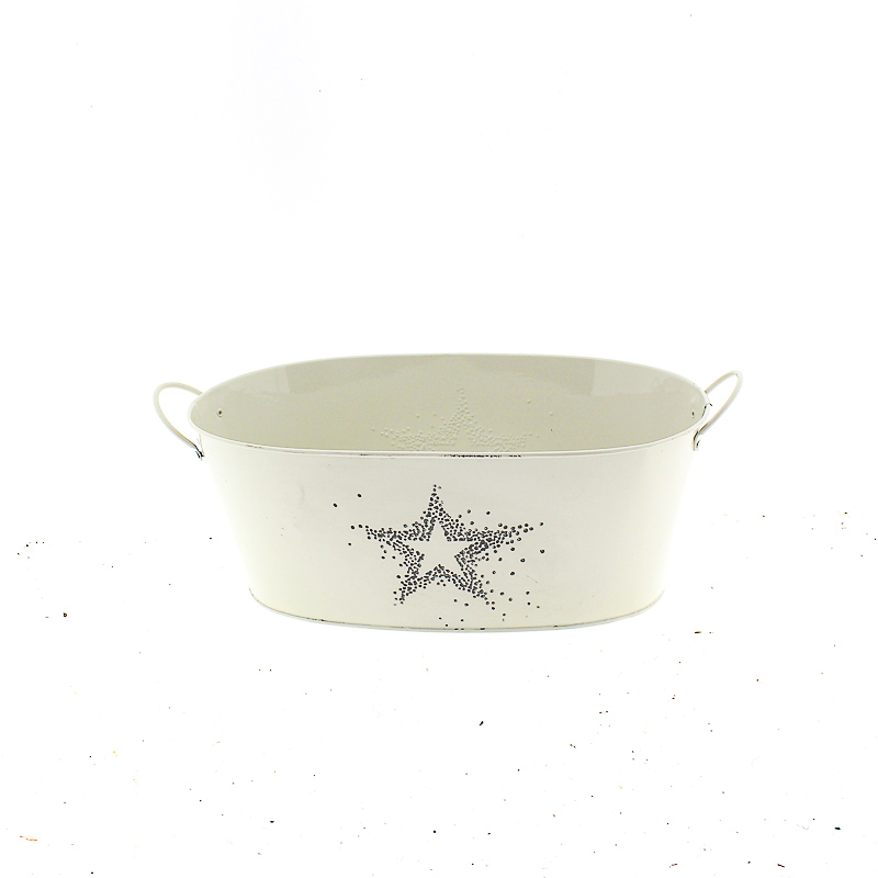 Zink wit met zilveren ster met oren ovaal 30×18 H13 B25x13cm (100.4398)