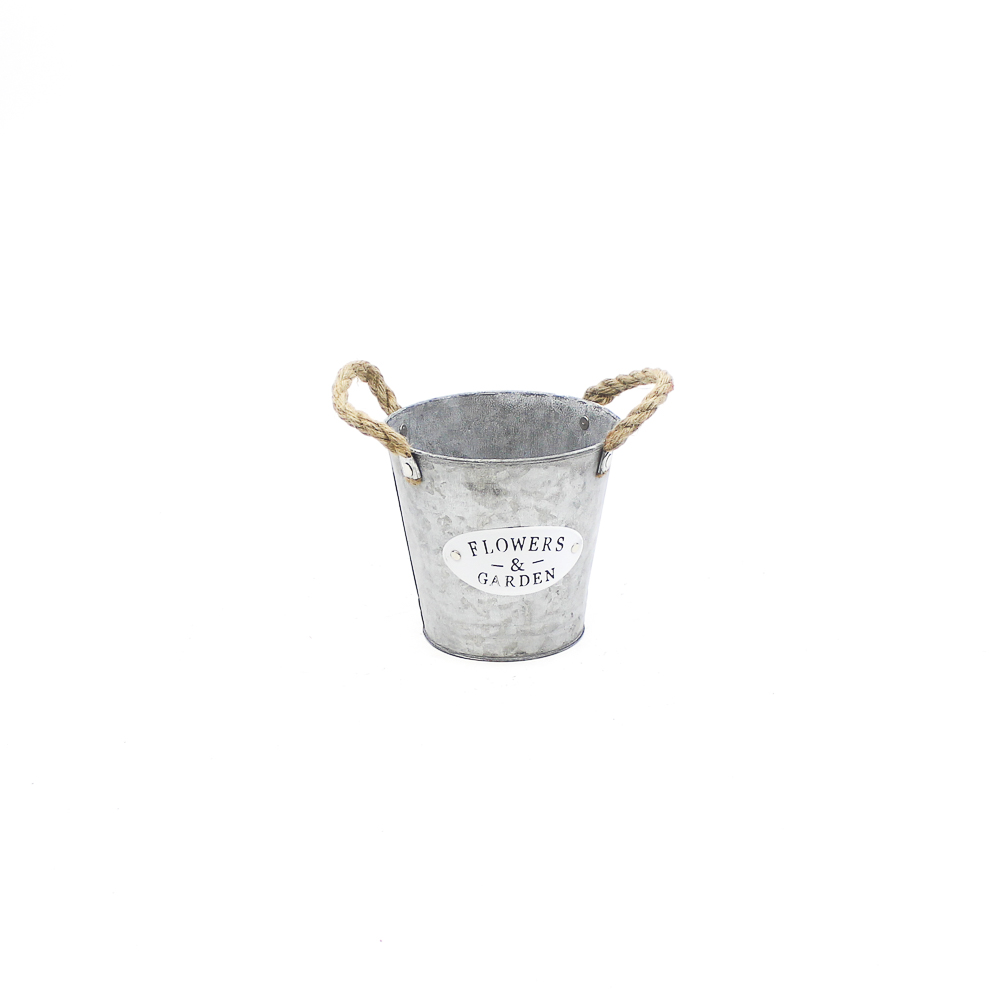 Zinc bucket with rope ears "Flowers & Garden" D10cm