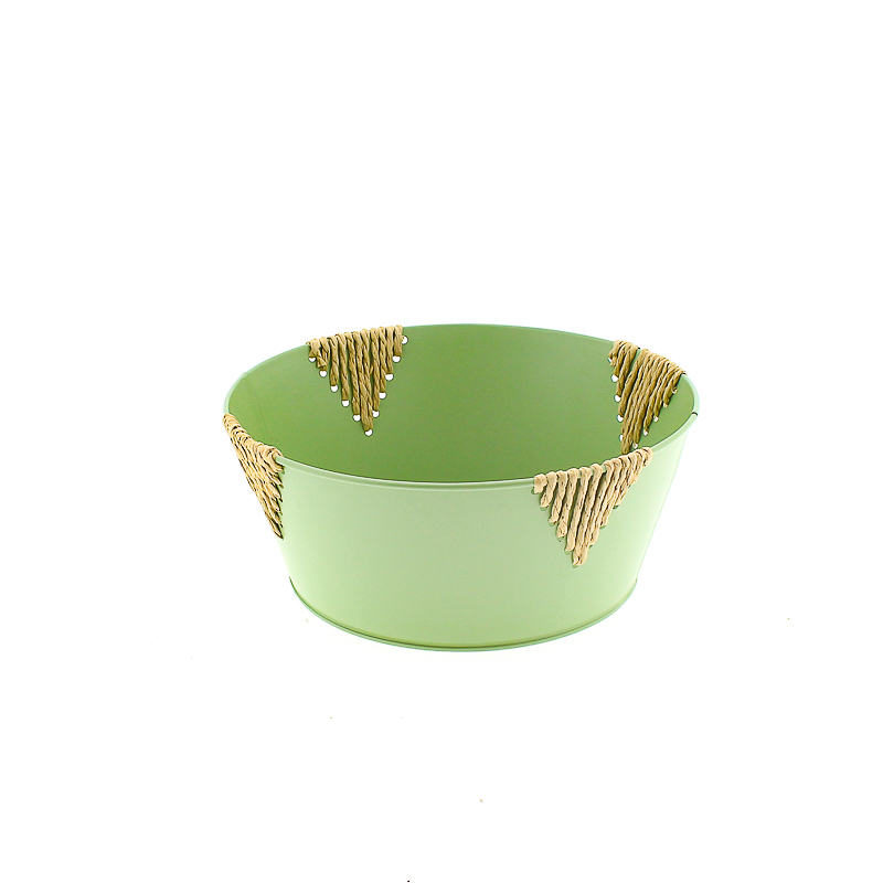Zinken planter met touw groen rond D22 H9 B17cm aantal