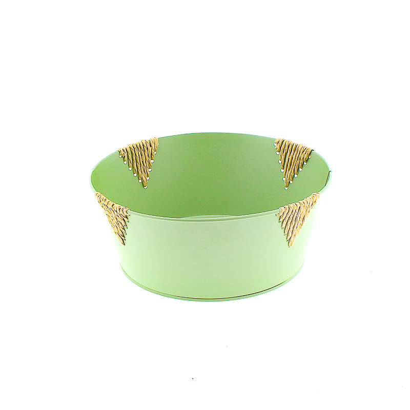 Zinken planter met touw groen rond D25 H10 B20cm aantal