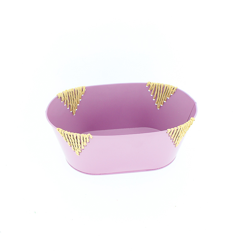 Zinken planter met touw paars ovaal 25,5x15,5 H10 B21x12cm aantal
