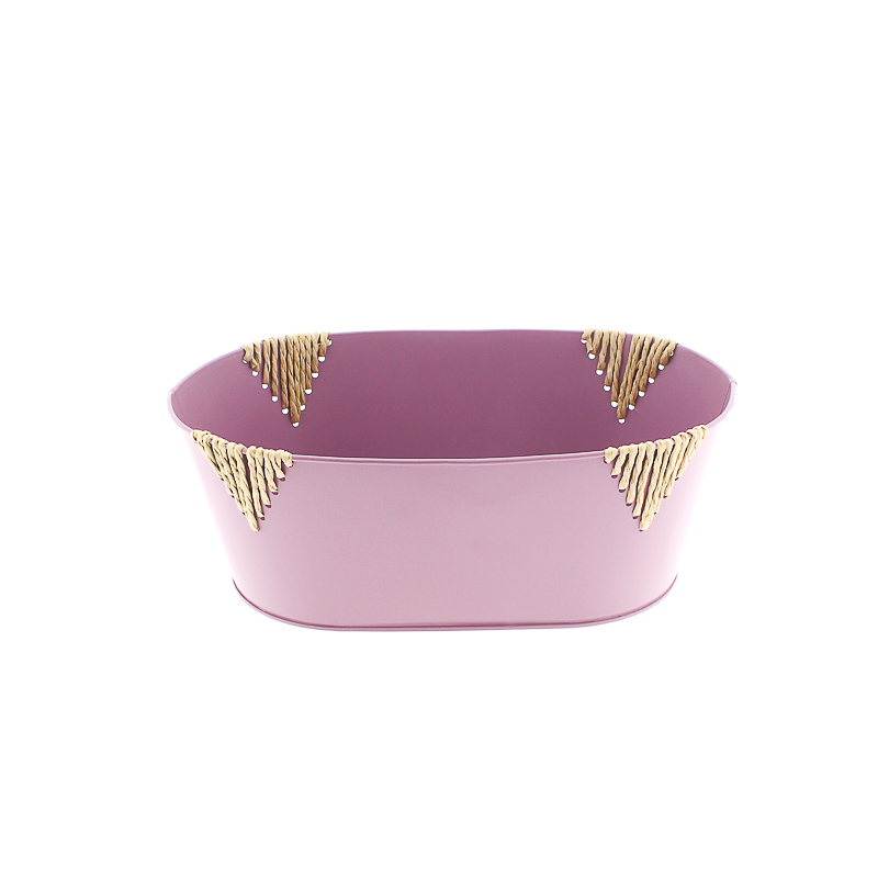 Zinken planter met touw paars ovaal 30×18,5 H11 B25x14cm