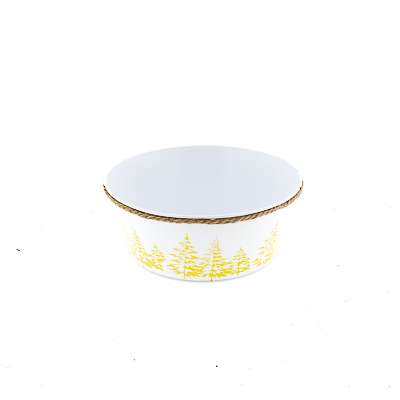 Zinken planter wit met kerstbomen print goud rond D22 H9 B17cm