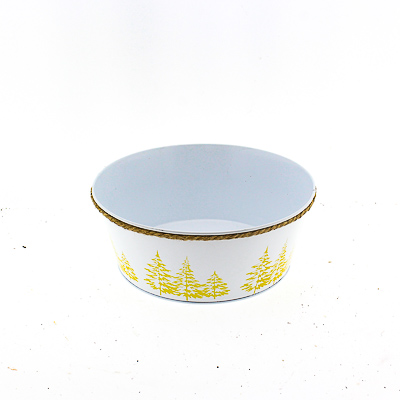 Zinken planter wit met kerstbomen print goud rond D25 H10 B20cm aantal
