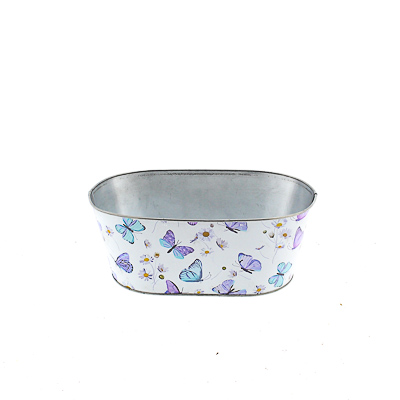 Zinken planter wit met vlinders print ovaal 25,5x15,5 H10 B21x12cm aantal