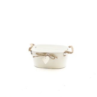 Zink wit met touw oren en houten hart ovaal 24,5x15cm